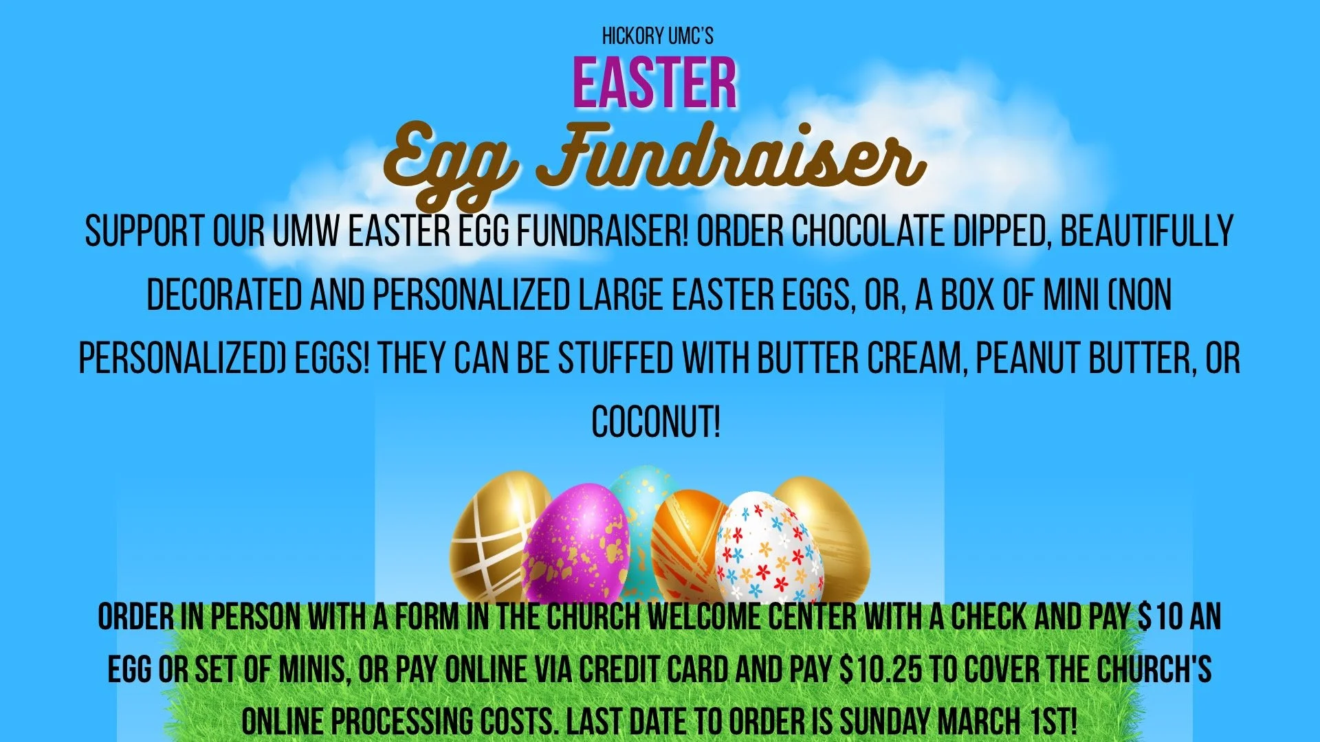 Eggs will be ready for pick-up at the Church - Wednesday, April 1, 2026 1:00 – 7:00 p.m. & Thursday April 2, 2026, 10:00 am- 2:00 pm